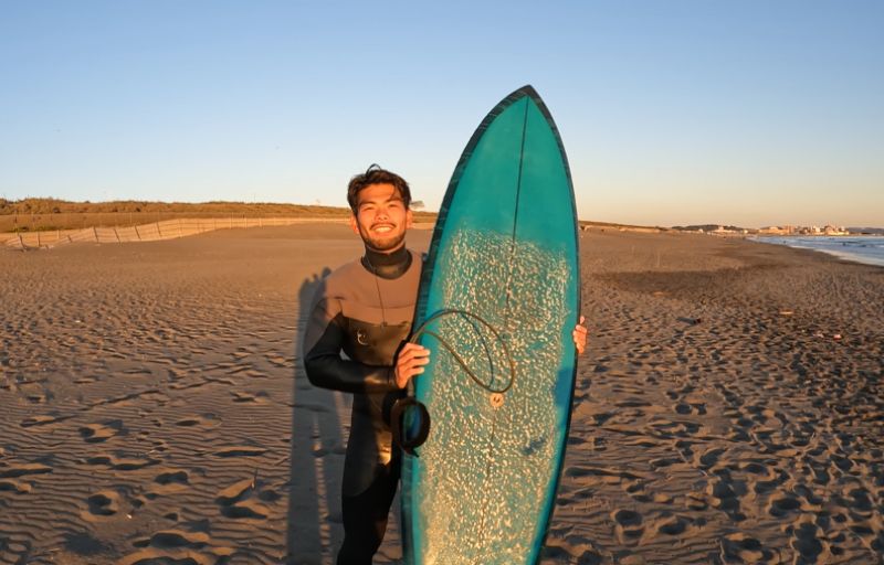 普段僕が乗るショートボードに比べると、今回は少し長め・大きめのサイズ感でした。