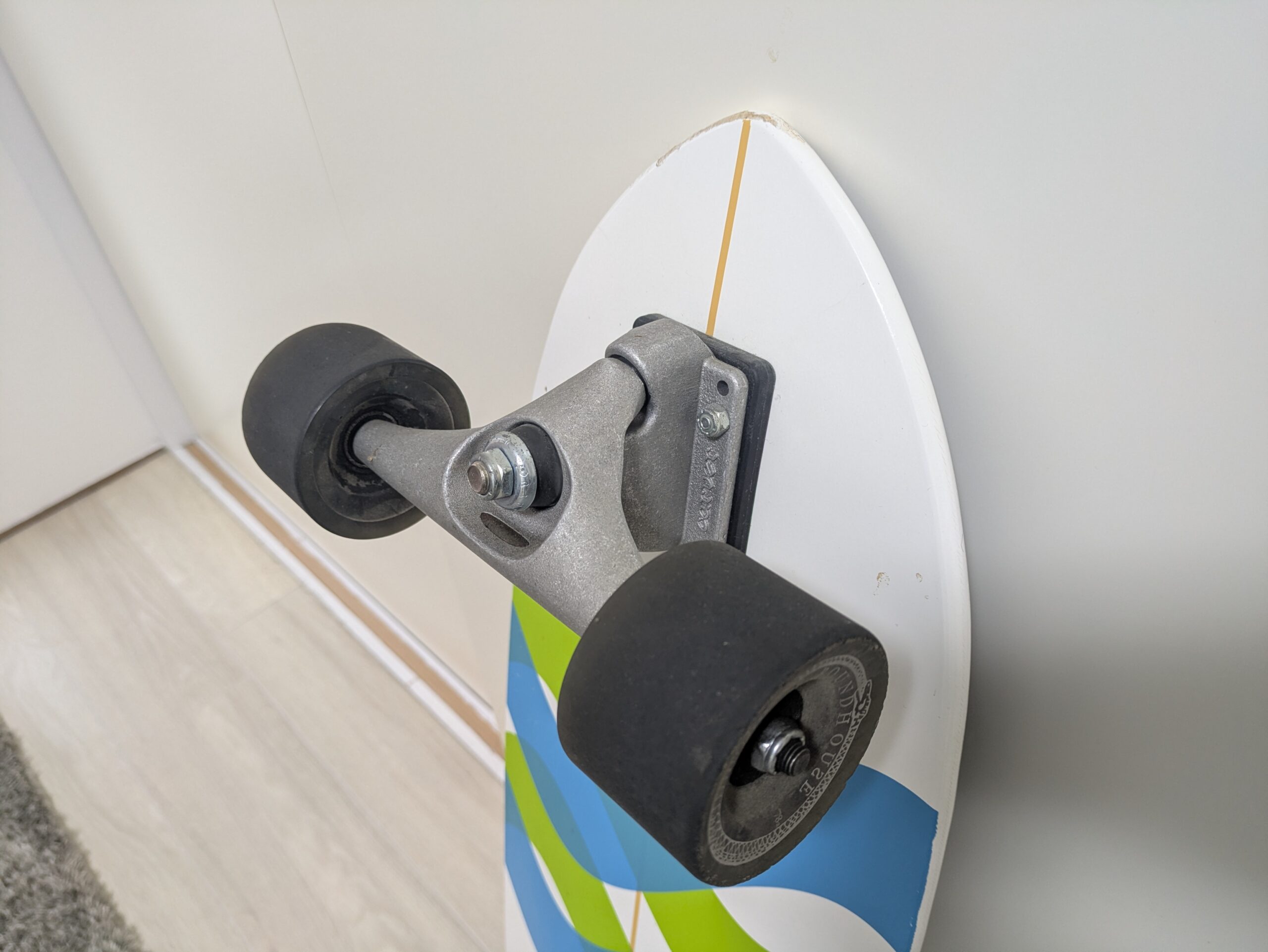 • グリップ力の高いウィール: 78aという柔らかいウィールが標準装備されているので、地面に吸い付くようなターンができ、SUPの深いレールワークの練習に最適です。