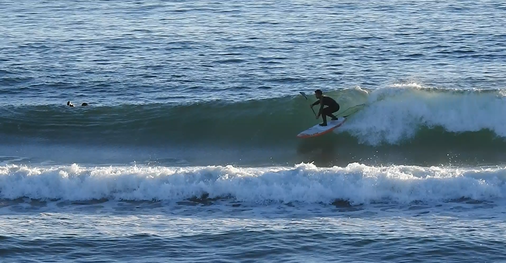 SUPサーフィンでは、パドルの推進力があるとはいえ、波の力を最大限に使うことがロングライドの鉄則です。